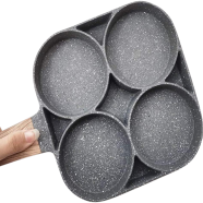 SMARAN 4 Hole Omelet Pan for Burger Eggs Ham Pancake Maker Wooden Handle Frying Pot Non-Stick Cooking Breakfast